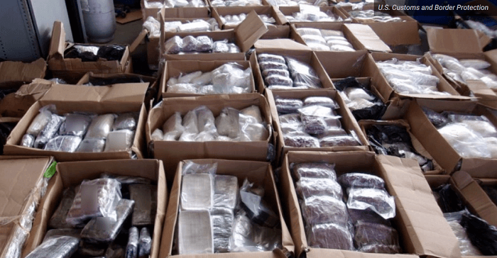 Amerikaanse douane- en grensbewakingsfunctionarissen in Otay Mesa bij San Diego aan de Amerikaanse-Mexicaanse grens hebben vrijdag meer dan 3.100 pond (ruim 1.400 kilo) methamfetamine, fentanylpoeder, fentanylpillen en heroïne in beslag genomen. Het is de op een na grootste crystal meth-vangst langs de zuidwestgrens ooit. Dat meldt de U.S. Customs and Border Protection (CBP).