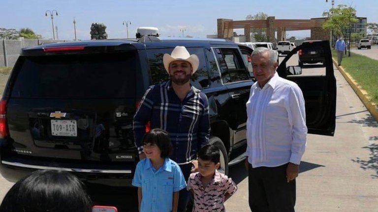 De Mexicaanse president Andres Manuel Lopez Obrador is woensdag tijdens een bezoek aan de deelstaat Sinaloa gestopt voor een korte foto-ontmoeting met een populaire zanger van “narcocorridos”: Alfredo Rios, alias “El Komander”.